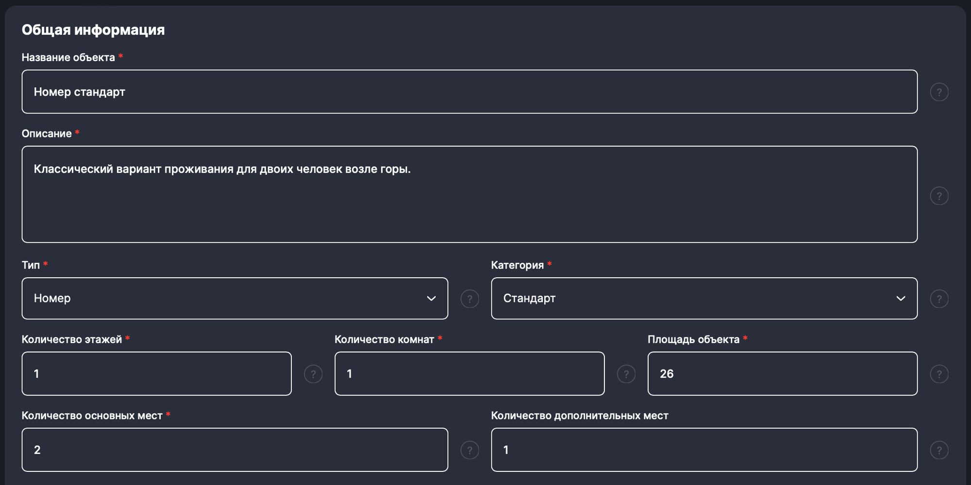 Далее нам необходимо заполнить карточку конкретного объекта:
