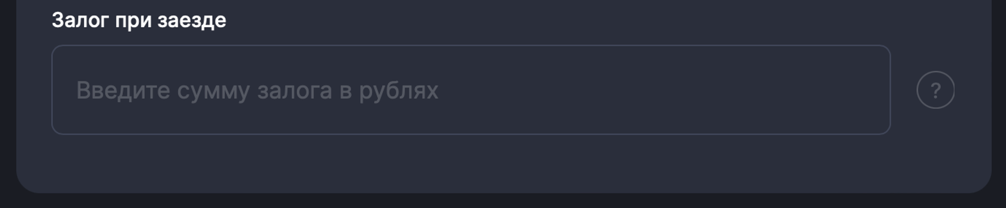 Если у вас предусмотрен залог, укажите его в настройках. Сервис не удерживает залог! Владелец или администратор принимают залог самостоятельно при заселении.