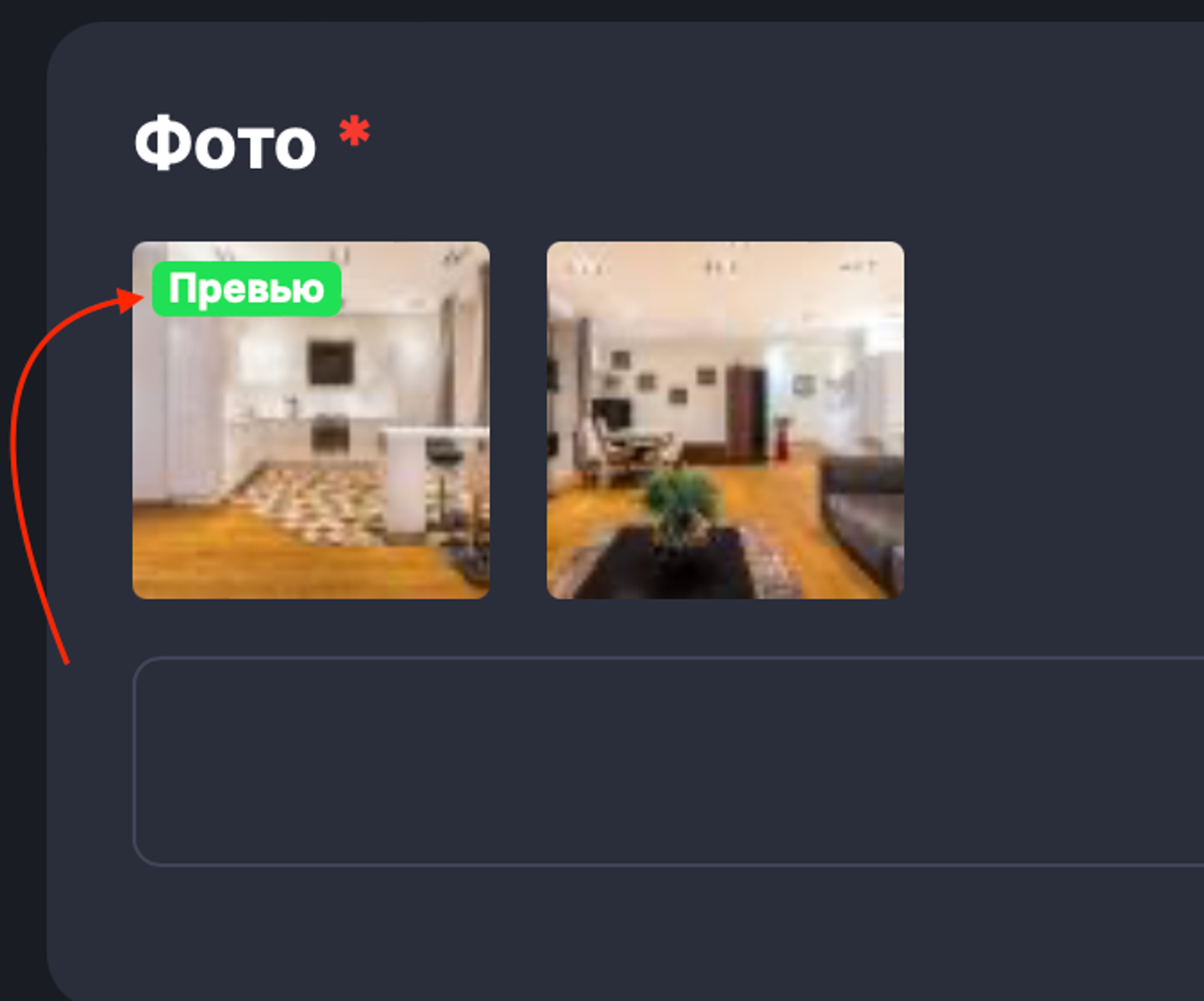 Фото с пометкой превью будет выводиться в поиске в карточке объекта. Чтобы изменить главное фото, просто переместите мышкой желаемую фотографию на первое место в строке