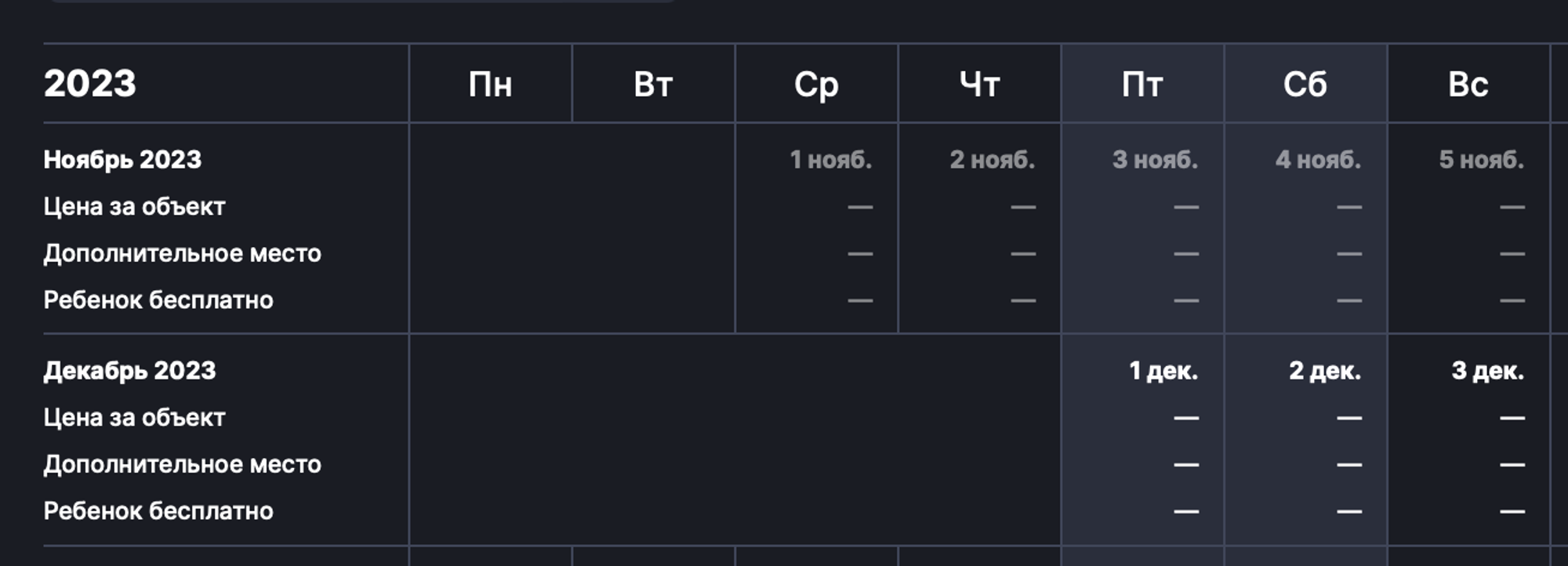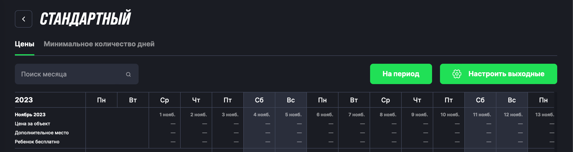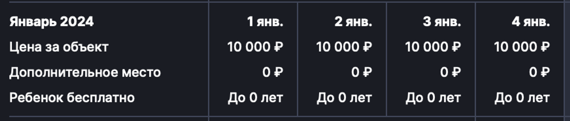 После настройки цен и дней, ваш объект полностью готов к получению броней.