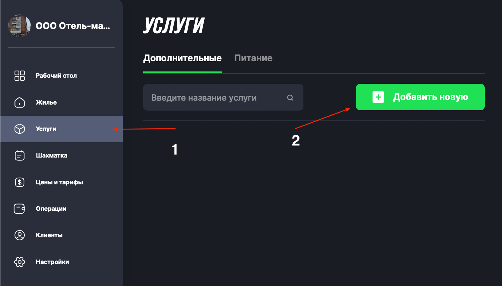 Для добавления услуг нам необходимо перейти в меню “Услуги” и нажать “Добавить новую”