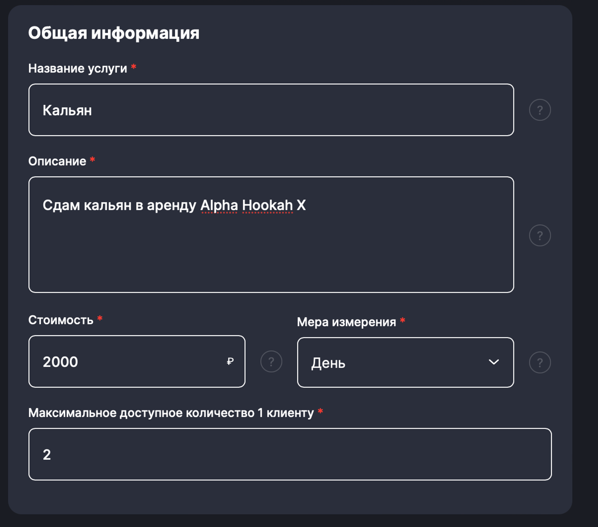 Название услуги — Введите название услуги, которое будет понятно для туриста.